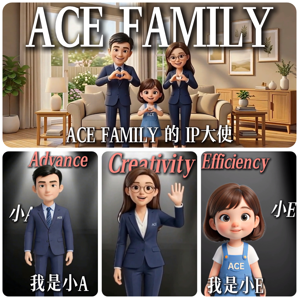 2026年1月8日年度盛典之上,ACE 正式启幕品牌新篇。官方品牌号全面升级,千人自媒体矩阵同步启航,三大IP形象大使(小A/小C/小E)重磅登场,将专业、创新、高效的家族内核具象化,联动ACE CHAT智能服务,让专业价值传递更具温度与穿透力。